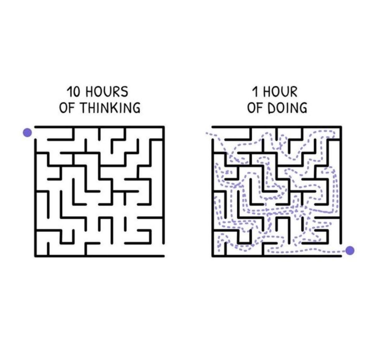 Most importantly, you’ll start to get over your perfectionism or fear. See the maze above? That’s probably the best example I’ve ever seen of the “don’t think, just start” mentality and why it works. 1 hour of doing results in more than 10 hours (or 1000 hours!) of thinking about it.